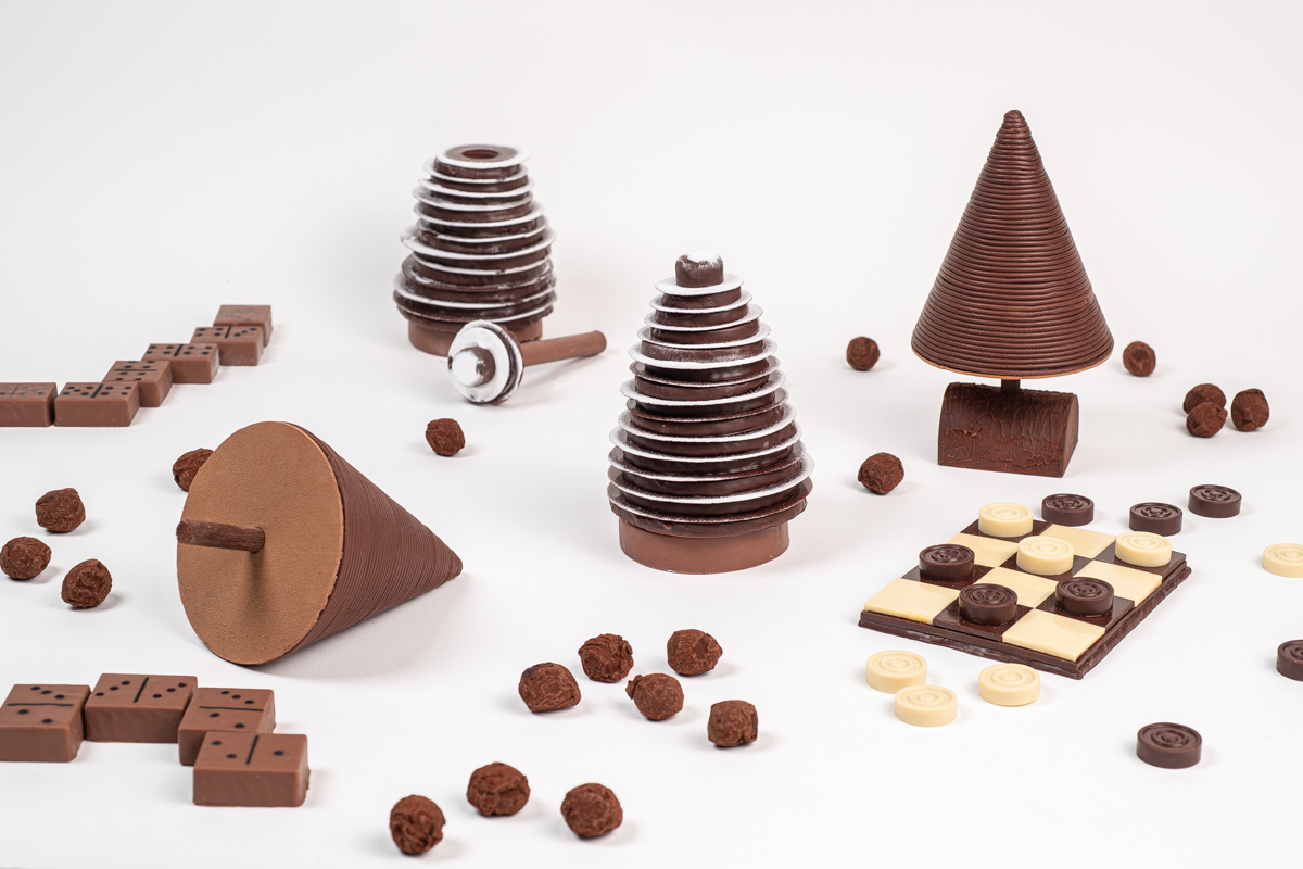 ‘Treasures of time, pleasures of time, nostalgia for games of yesteryear, games of yesteryear that bring the magic of Christmas to the table. Timeless, gourmet chocolates.